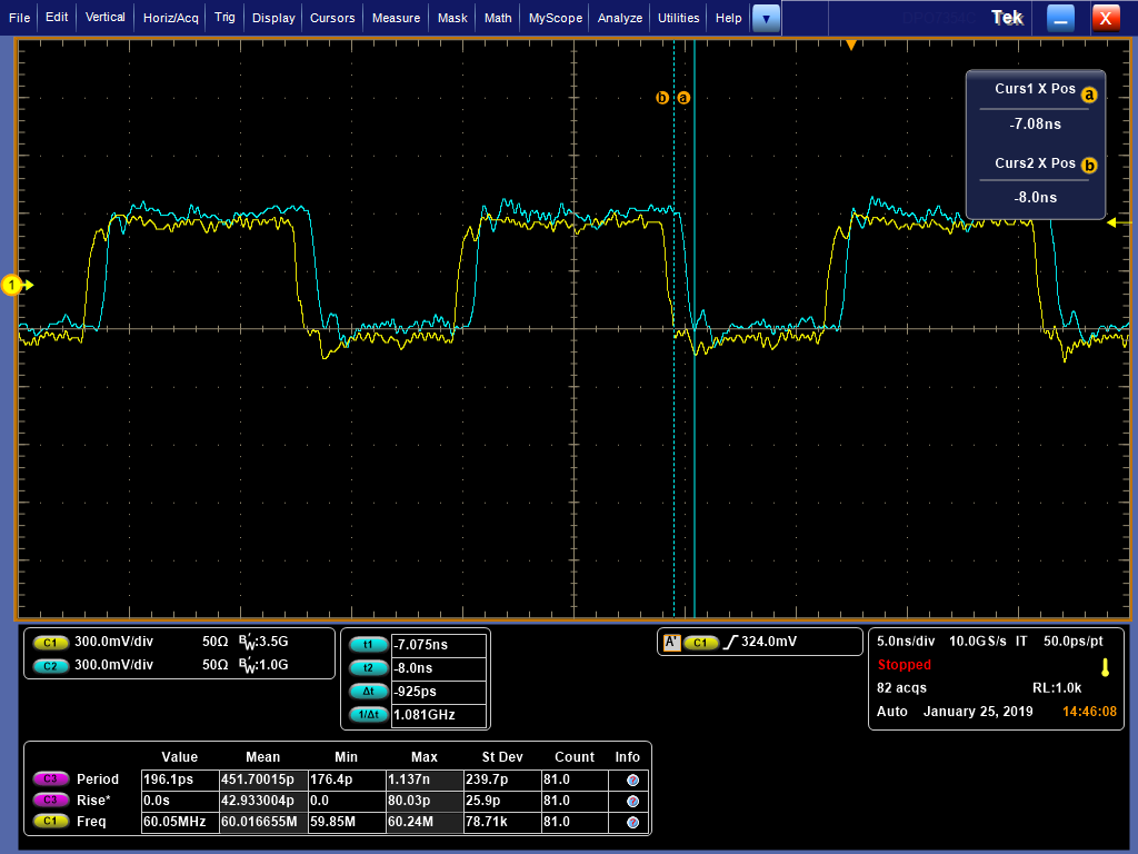 Another thing, we also found that there is some delay between two LVDS output CLK, about 925ps, is this acceptable?