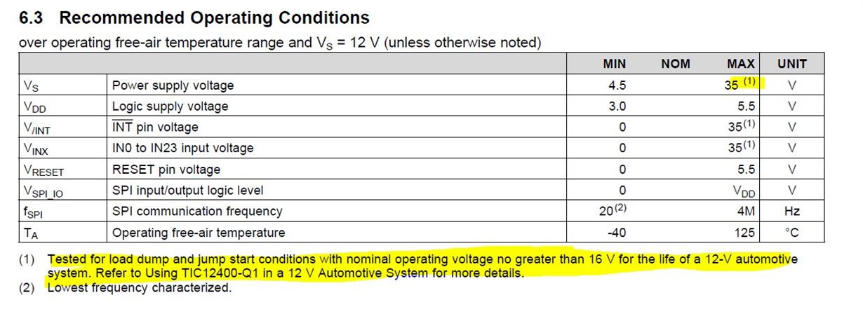 TIC12400-Q1 datasheet stated recommended operating conditions.