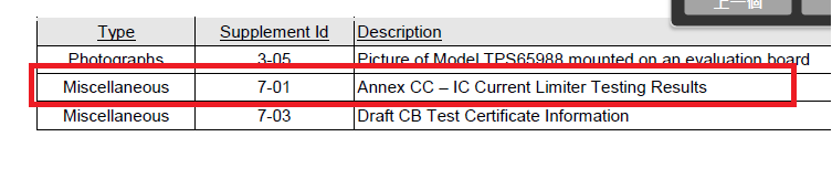 We provide the CB report to cusotmer, and customer is asking for the 7-01 Annex CC-IC current limiter testing results.