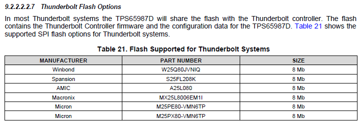 I believe minimum requirement for SPI flash for non-Thunderbolt application is the following.