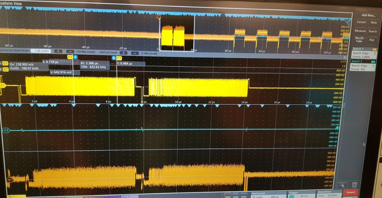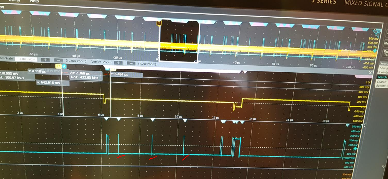 We are seeing some behavior with the chip that we are trying to characterize a bit more, but at a high level it seems to indicate that there is a random pulse being generated on the output side of the chip, which wasn't seen on the input.