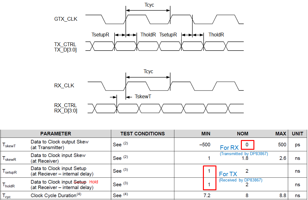 Does the value of TskewR written in 7.9 RGMII timing of the data sheet include the initial value of register 0x0086 (Receive Clock Delay: 2 nsec)?