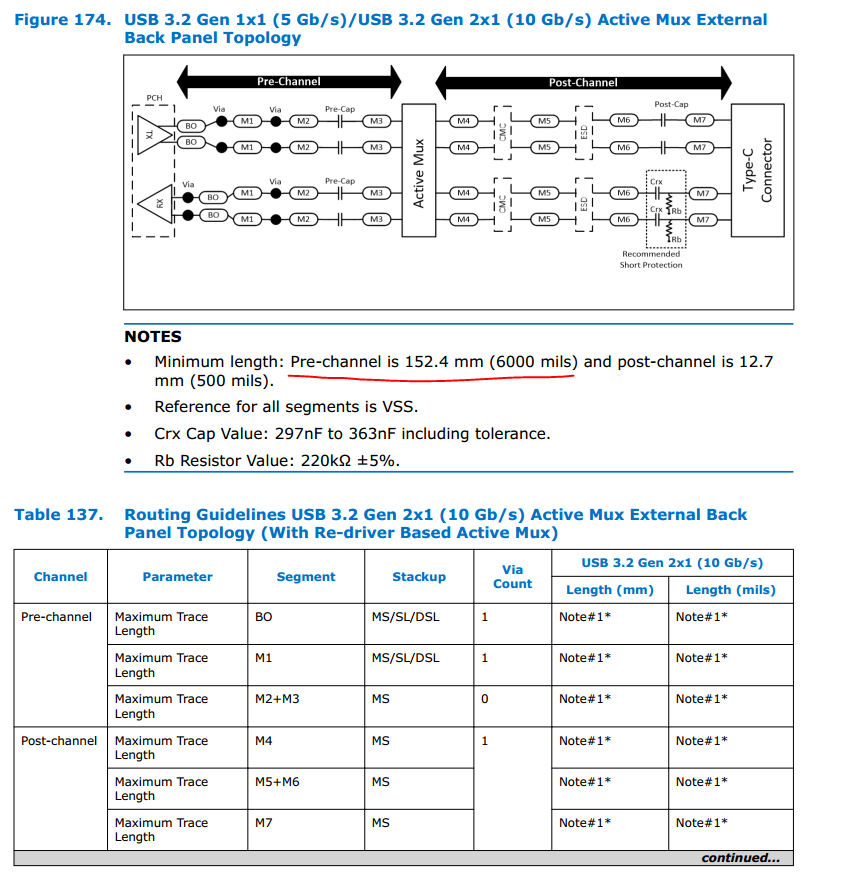 - PCH to MUX for USB3.1 Gen2 :3000mil(Pre-Channel)