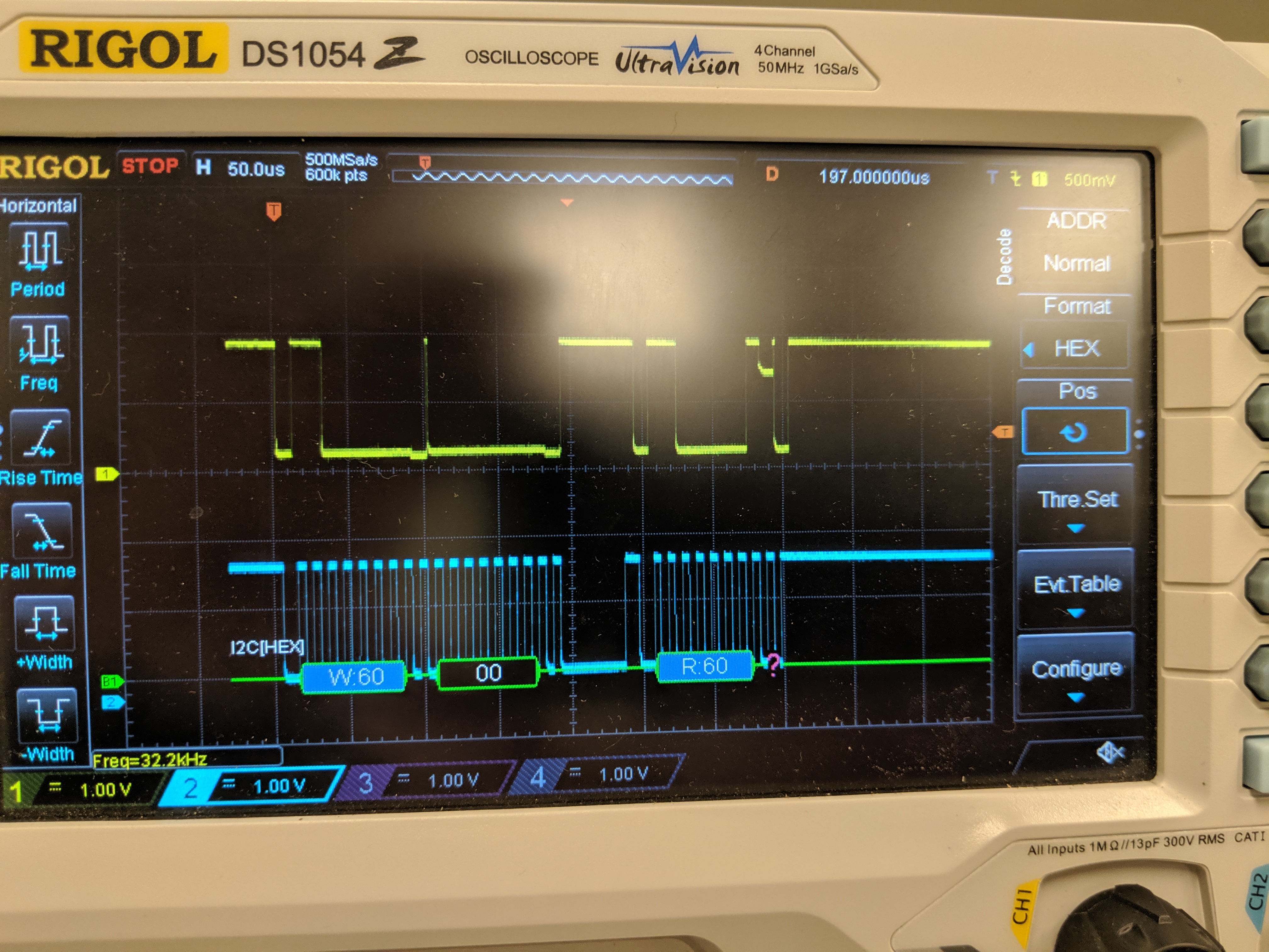 When reading register 0x00 from 0x63, 0x67, 0x6c, 0x6d, and 0x6f, they all return 0xC0 ( inferring they all believe that their ID is set from the IDx[0]and IDx[1] pins, but have an address of 0x60.
