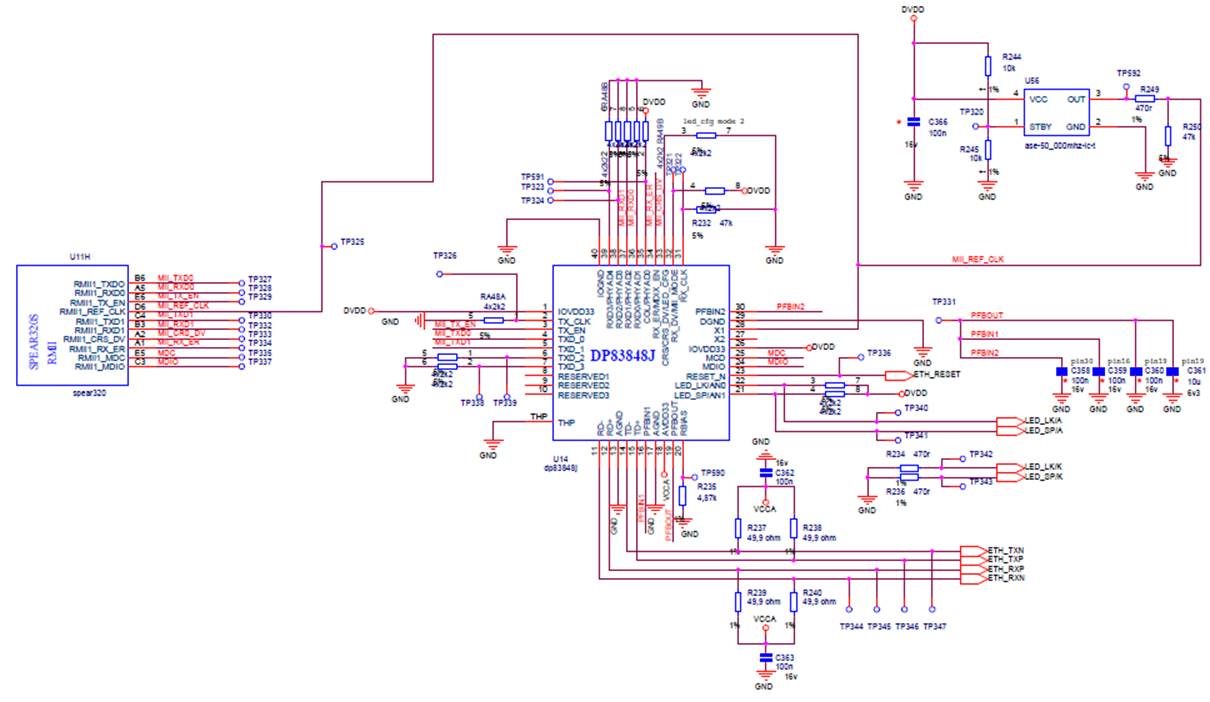 On layout side this track and all the tracks of the RMII interface of the SPEAS320S have not been adapted in impedance on the layout side as indicated on the datasheet of the physical ethernet and from the spear320 datasheet