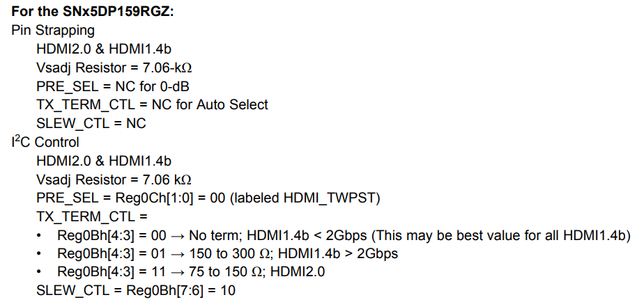 For HDMI2.0, the termination also needs to be changed to 75 to 150ohm.