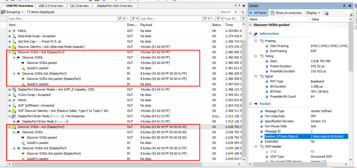 after the initial VDM discover identity, SVID, and notebook issue Enter mode request, but PD did not ACK. after ~ 120msec, the PD re-issue Discover SVID, but this time, it send the number of object code = 2.