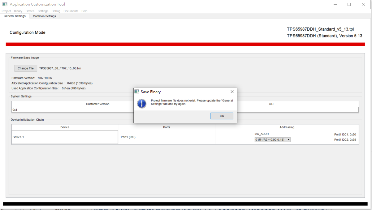 Our customer used the TPS6598x Application Customization Tool(SLVUB60A) Execute to Step 8. Once the configuration is complete...