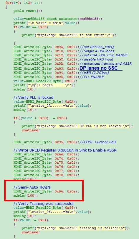 Thanks for the reply. Customer is using DSI_CLK in their application, we will request them to double check the frequency and quality firstly. BTW, they are also having a Start Semi-Auto Link Training issue in below, can you help to check what's the possible reason?