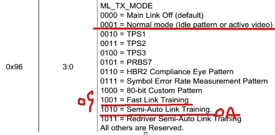 Please refer to section 8.4.5.7 for the difference in DP Main Link Training.