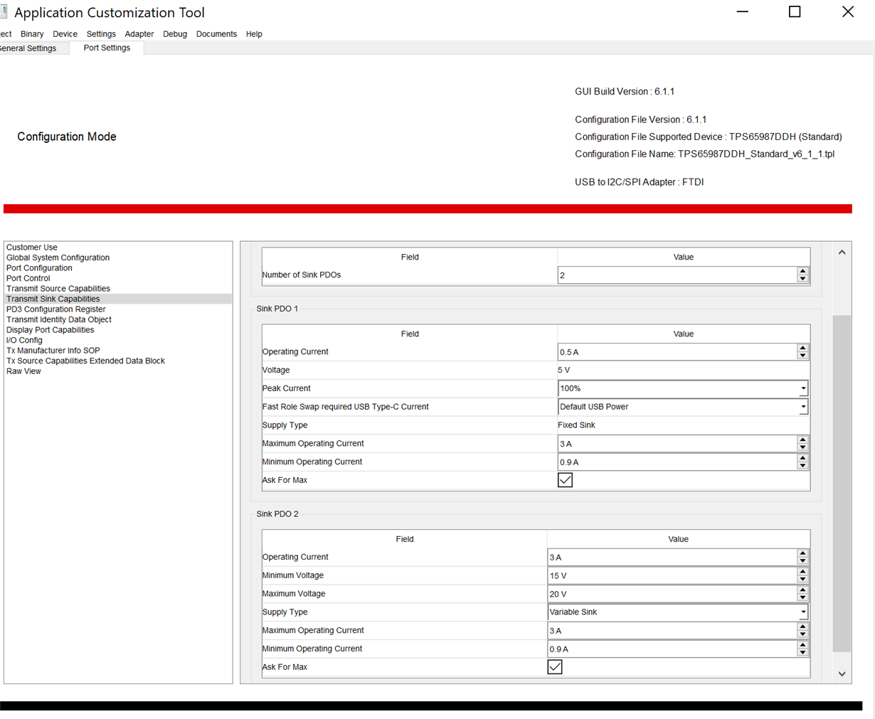 May I know the configuration code of TPS65987D to support below function? Much thanks.