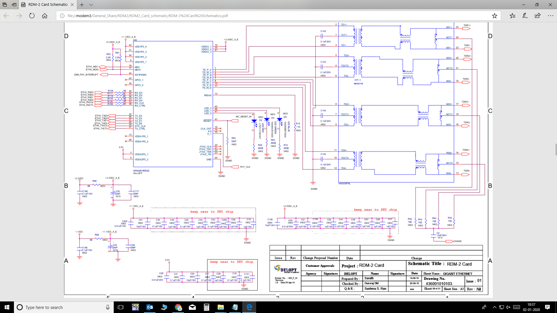 We are using gigabit phy Ethernet in RGMII mode it was working fine in my PC (LINUX RHEL 7.3 OS) but when i connect the gigabit switch between my card and PC i cannot able ping the card and by debugging i came know that it had struck in the interrupt and it was not coming out from that until switch is Disconnected is there related to hardware or software by the way we have followed the same from DP83867 EVM schematics please help me to come out from the issue