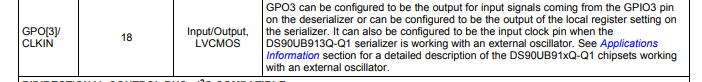 We Want to use DS90UB913A-Q1 GPIO[3] as General Purpose Input , As per datasheet it can be used for CLK input only.