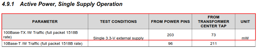 For the power consumption of TLK105 and DP83822I under the following conditions,