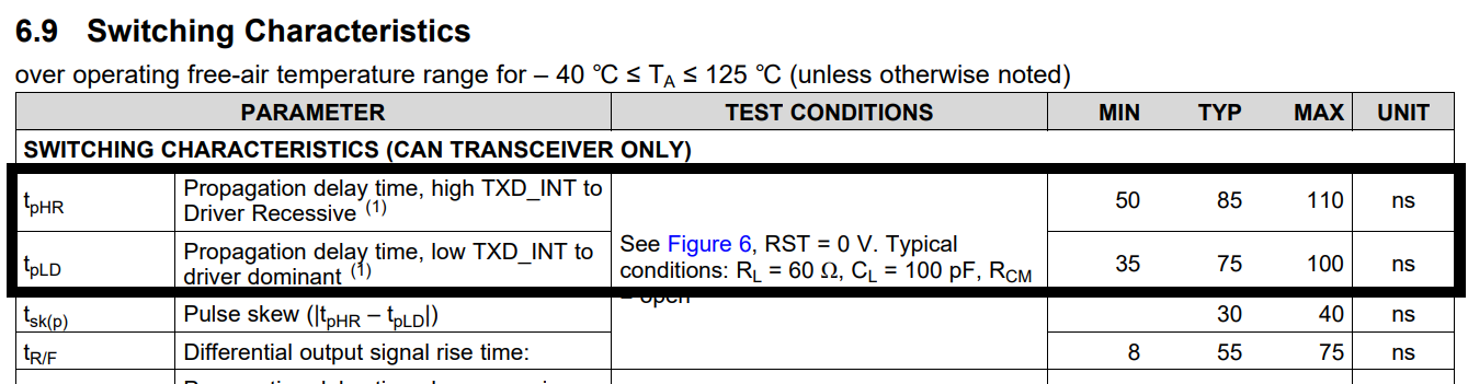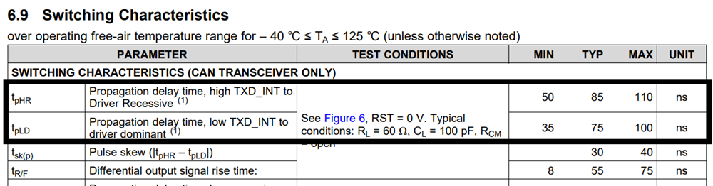 Customer has a requirement on: Node internal delay time” The Max internal delay time in an ECU shall not exceeds 350 ns, is this just the spec as below? If yes, what's the maximum number? Thanks.