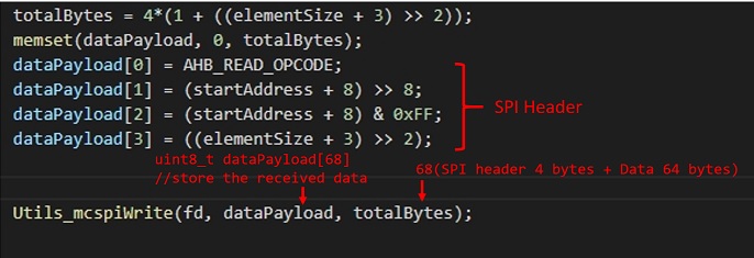 On D3-TDA3xx-rvp, I used TI provided "Utils_mcspiWrite()" function in VisionSDK 03.07.00 to send SPI command to TCAN4550EVM and tried to receive 64 bytes CAN FD data.