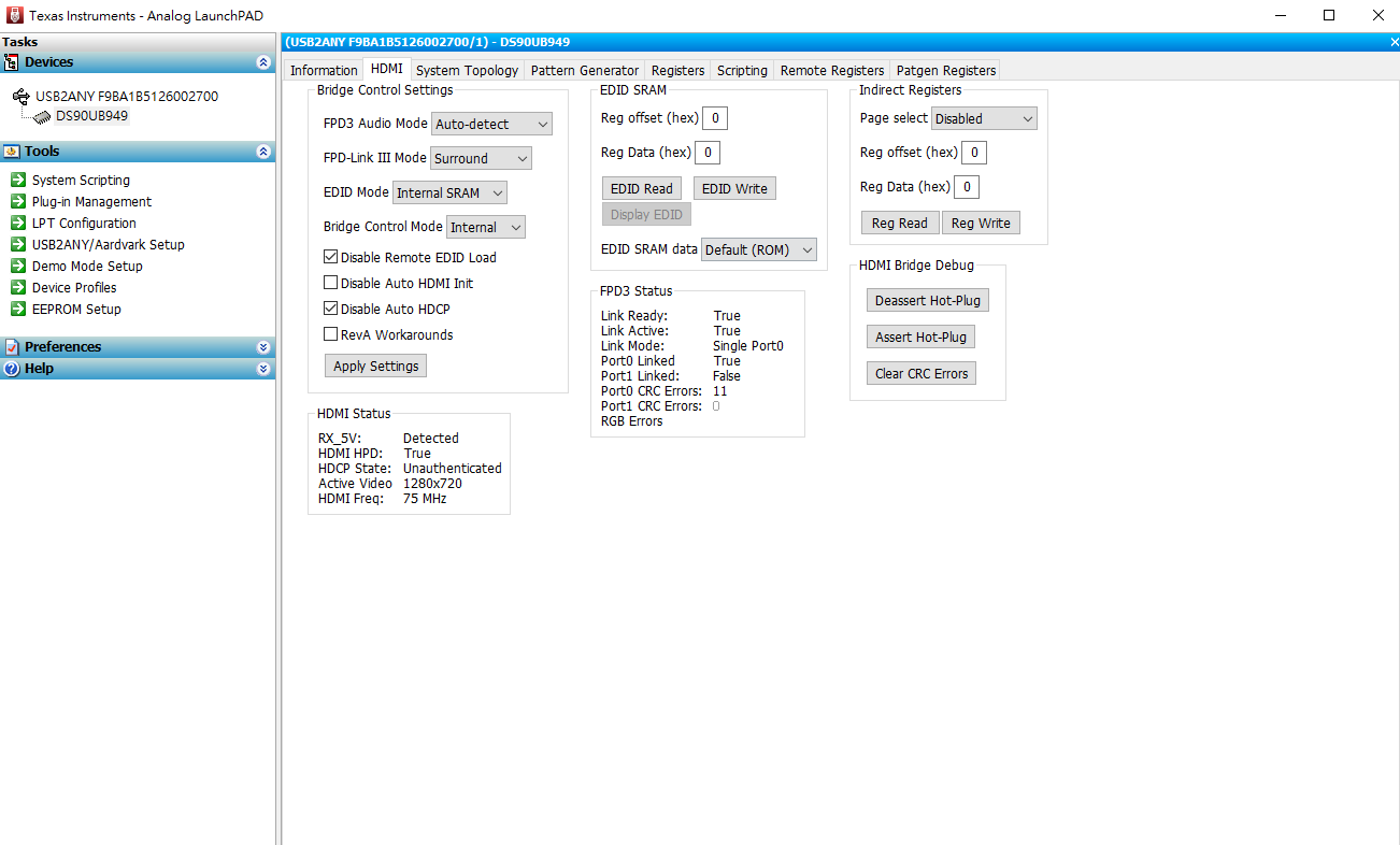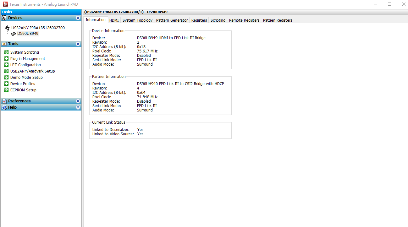 HDMI input --> DS90UB949-Q1 EVM --> DS90UH940-Q1 PCB --> processor.