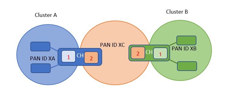 We are trying to implement a cluster based network where the clusters are separated using different PAN IDs. But in this method we cannot communicate between cluster heads. Therefore, we thought of implementing cluster heads using two CC2650 chips. One chip acts as the sink and collects data from nodes within the cluster and the other chip would be communicating with other cluster heads of the network. So the chip that collects data from the cluster should transmit data to the other chip which communicates the received data to the other cluster head. For the above mentioned communication between CC 2650 chips, we were looking for a communication method and we thought serial communication would be suitable. That’s the context of the above question.