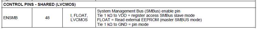 DS125MB203 operates in 3 modes (SMBus slave mode, master mode, pin mode) to set ENSMB as the following.