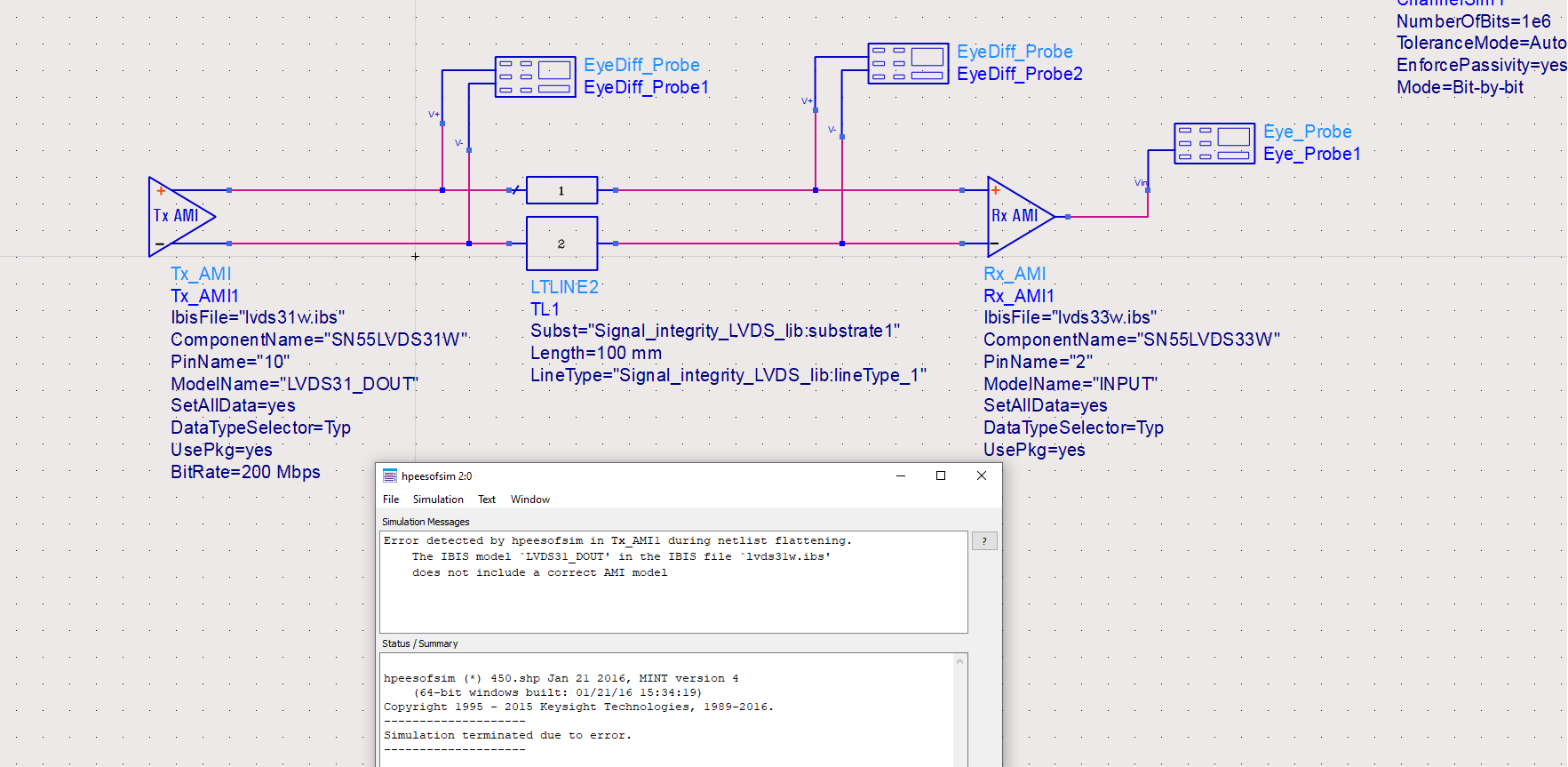 My customer was trying channel simulation with LVDS tx and Rx IBIS model in ADS. It is showing that the IBIS model is wrong. Can you check on this, attached is the screenshot for reference. Will the model work for Zuken and Hyperlynx only?