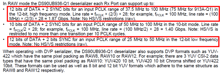 In 936 RX MODE, it has RAW12 LF and RAW12 HF.