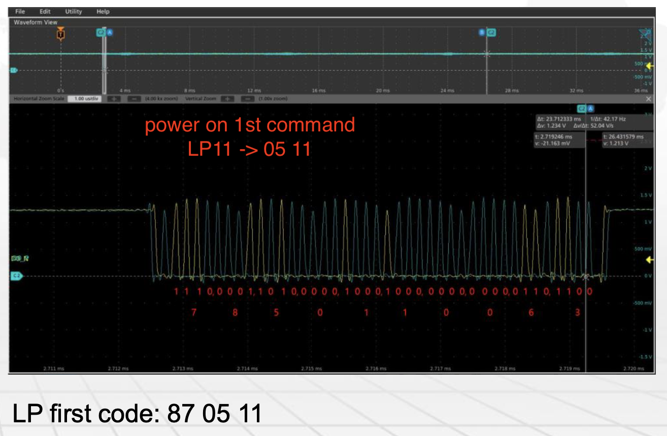 MIPI command: we have probed the input of re-timer, both display on & off does not send 00011110 command (trigger ULPS mode)
