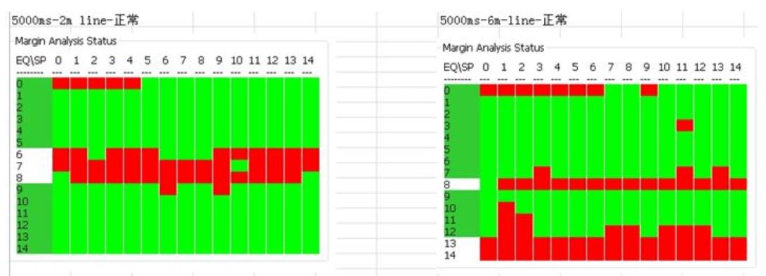 Customer use DS954 pare with DS953 for e-mirror application. They tested the MAP and the results are as below. The ALP configuration is as below. The left hand side one is tested by a 2 meters coax. The right hand side one is 6 meters coax. it seems strange, is that a testing issue? if yes, what may cause this issue?