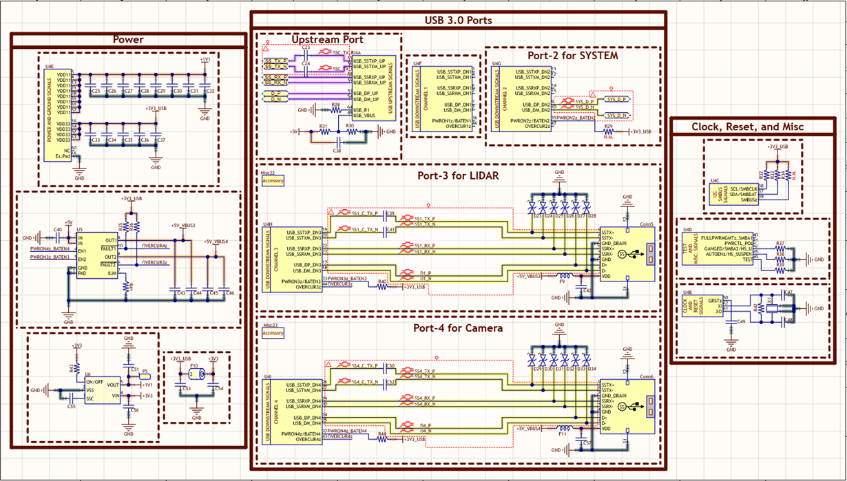 We are using Texas Instruments' TUSB8042A chip in one of our projects. We have received the schematic drawings of the TUSB8042A chip on the datasheet. The schematic page we created is attached. As indicated in the attached schematic, we use USB Hub's 2-3 and 4th ports. When we connect the TUSB8042A chip to the computer, we confirm that the chip is seen by the computer as 'Generic USB HUB' in the device manager. Also we cannot see the USB memory in any of the ports of USB_Hub on the computer side. 3.3V and 1.1V supply of the chip work smoothly. On the chip's datasheet, there is an inscription saying 'VDD must be at least 10 µs stable before VDD33'. The triggered state of the input supply for it is attached. 24Mhz crystal output externally connected to the TUSB8042A chip is attached. Do we need to do any programming on the basis of register in order to use the USB ports of the chip? I await your suggestions on this subject. I wish you good work.