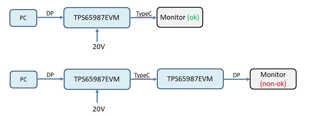 My suggestion is to reduce the overall trace length from the DP source to DP sink. The first option for this is to shorten the cables. The second option is connect the sink by using a Type-C cable from the PC to the EVM followed by the Display Port Sink Board to the monitor.