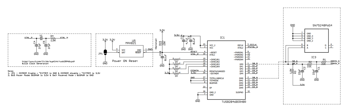 We designed a USB HUB with TUSB2046. When I connect the device to the computer it is showing device descriptor failed.