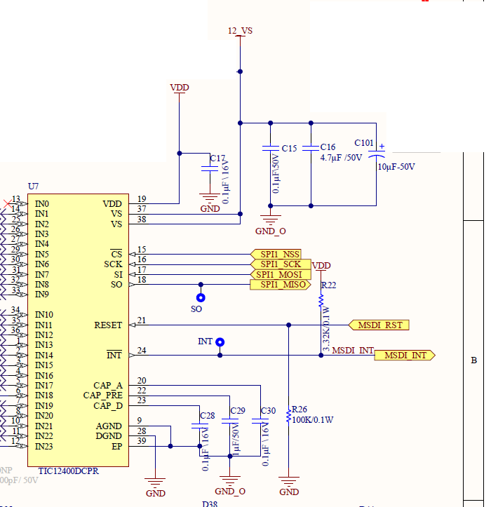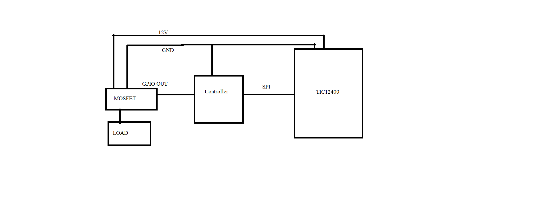 I am using tic12400. It works fine in the normal condition but as soon as I switch on my inductive load then it becomes hangs and unresponsive until I manually reset the power. I have attached schematic and block diagram.