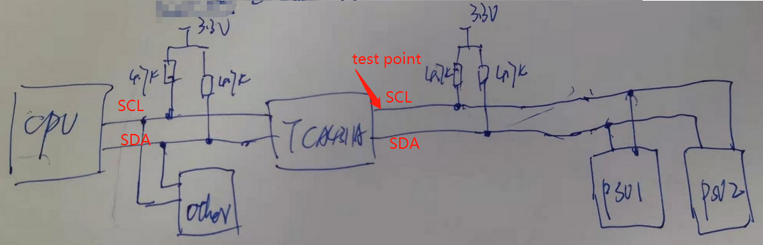 We have a case that uses TCA4311. We get the test waveform close to TCA4311 and find that SCL low level have fluctuates, Sometimes it goes over 0.6V, and we're worried about triggering the trigger Rise-Time Accelerators. We change to PCA9511, and the fluctuates disappeared.