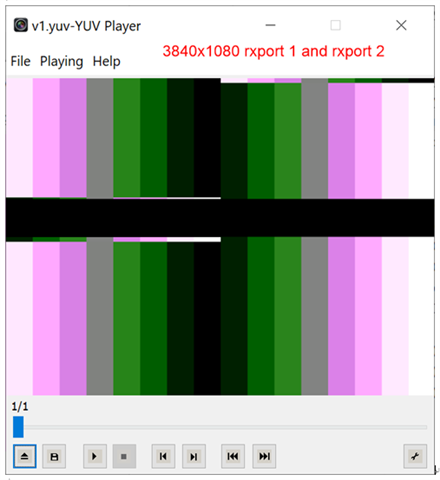 Customer expects a rxport0 serializer test pattern 1920x1080 on the left side of 3840x1080 image and rxport1 serializer test 1920x1080 on the right side Pattern of 3840x1080 image.
