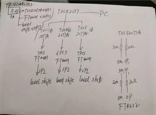The following is my application system diagram, and the attachment is the datasheet of ft4222: tusb2077a No.2 can't read the downstream devices when it runs for 10 to 20 hours, and USB devices can't be recognized on the PC side. Tusb2077a No.1 and No.3 occasionally appear. At this time, the power on restart system sometimes recovers, sometimes it can't recover, and the hubgfg / portpwr / portdis LED displays red.