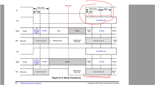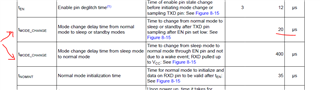 Two times the Tmode_change but none seems to be the delay from the standby state, EN set to high to normal mode. Also all 3 them point to 8-15, though the transition from sleep to normal is in 8-16.