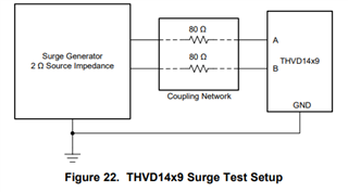 Our customer used THVD1429 on their board but during certification tests, the chip failed at 2kV surge test. The failure mode is short circuit of data+ data- to VCC and GND. I understand that the device can withstand up to 2.5kV surge voltage.