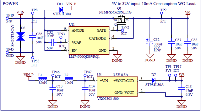 - The Surges tests at 1kV into VIN and DGND signals is OK.