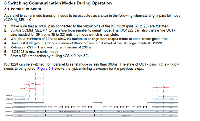 I thinking to use ISO1228 on output line which has output either parallel mode or serial mode which I can use to MCU for analysis. Is it possible