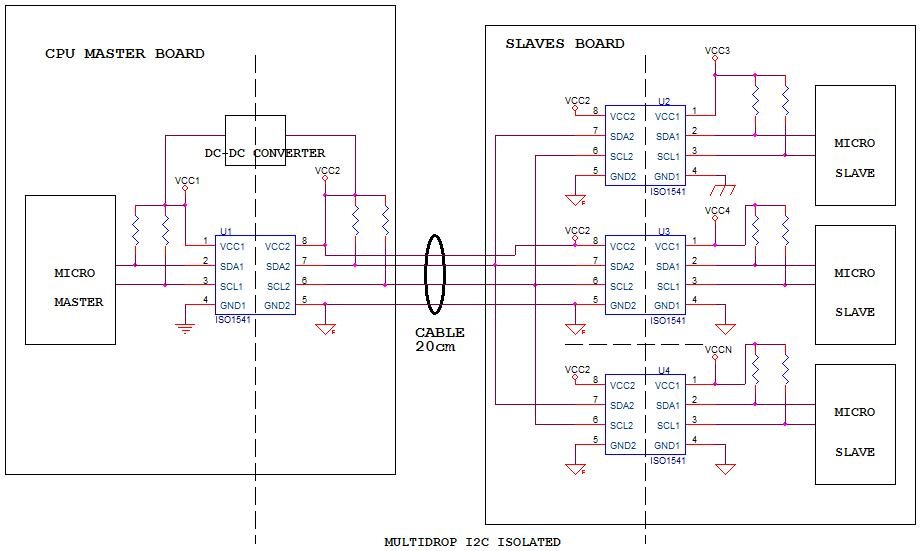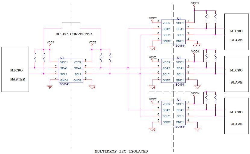 I want to build a multidrop i2c isolated bus using ISO1541.