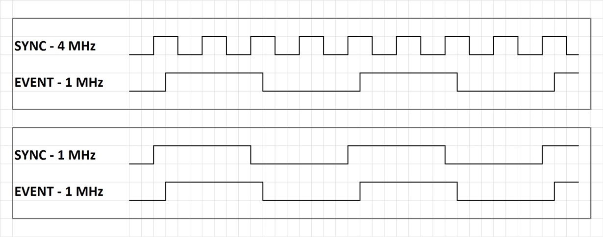 - We are using it in a SYNC-SYNC-SYNC-EVENT processing way, which means many sync period can have no event pulses.
