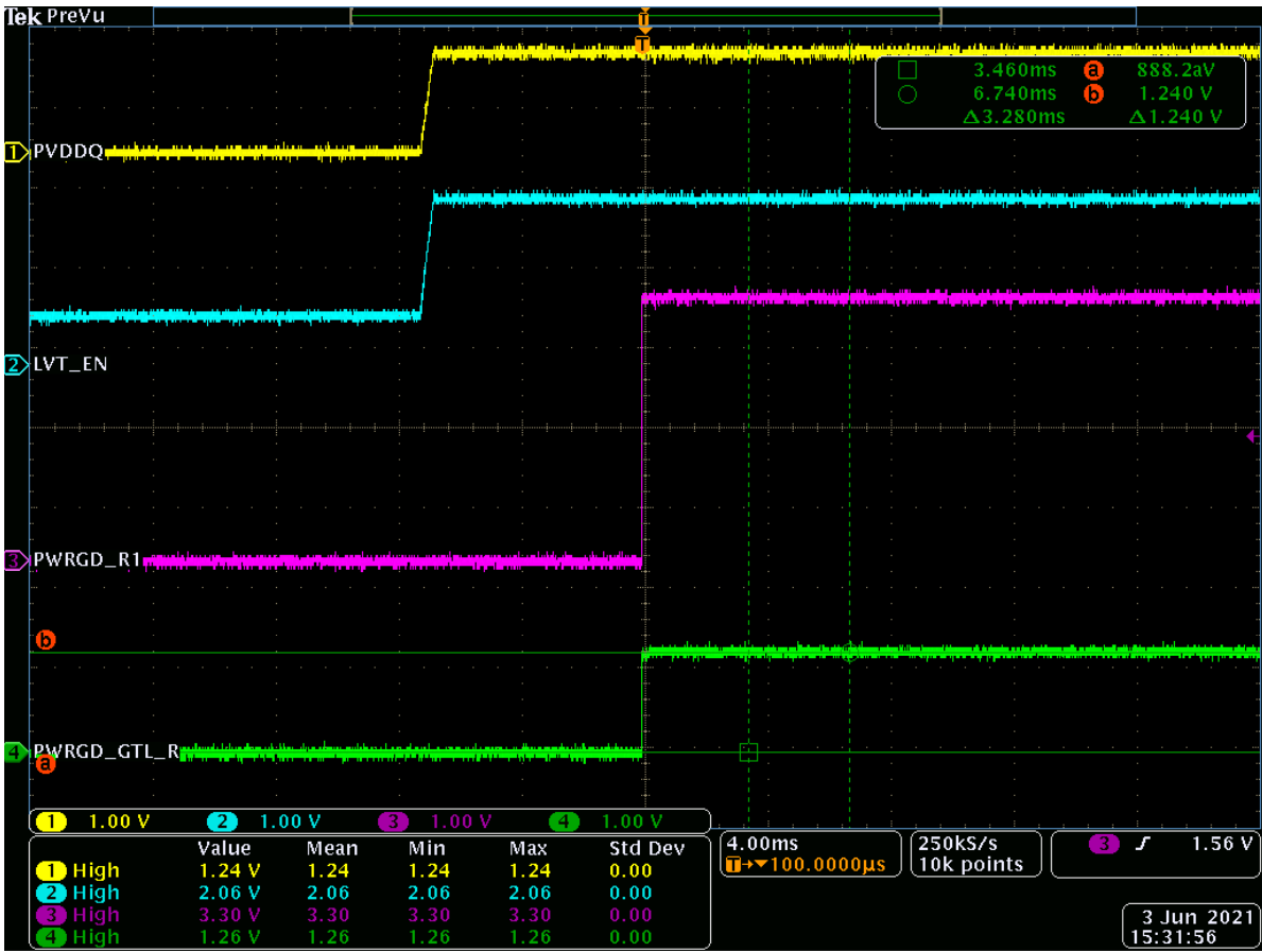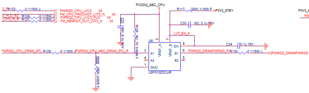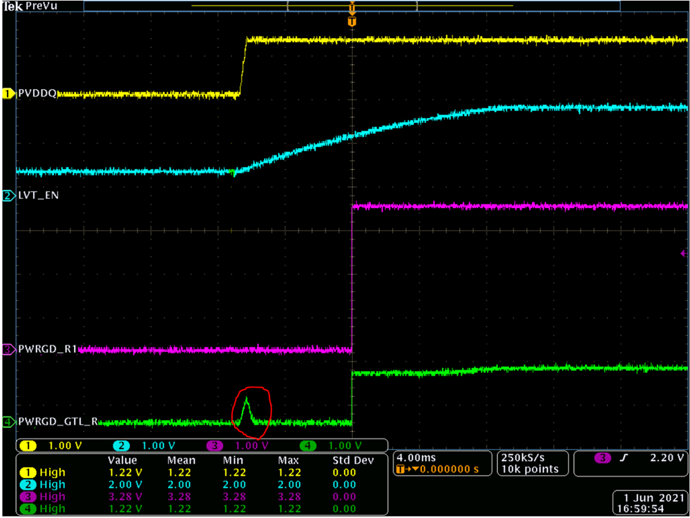 There is a glitch at A1 pin when VREF_A is powered up, it seems A1 pin raises through pull up resistor R128 before LSF0102 is enabled. Does power up sequence needed? Or, any other method can prevent this issue?