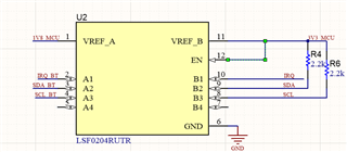 For more information, the SDA_BT and SCL_BT have pull-up resistor on other board. For the IRQ pin, the signal only comes from 3V3 part to 1V8 part.