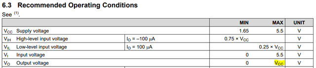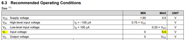 - In the first page it wrote that “Inputs Accept Voltages to 5.5 V” does it mean it 5.5V tolerant (which mean I can use VCC of 2.5V and the input signal can be 5.5V)?
