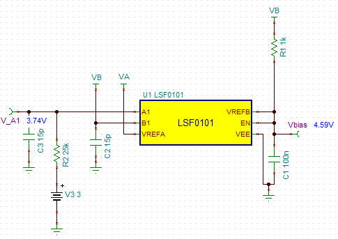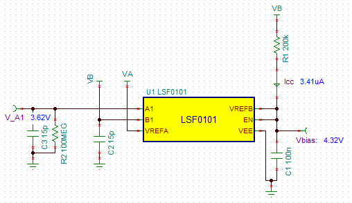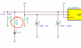 However, VrefB and EN at the LSF0108 chip (Pins 19 and 20) which are "driven" by the 200K/0.1uFD network "droops" to a significant lower voltage when doing data transfers.......as low as about 2V. With no data transfers, we are seeing about 4.5V (ie, about 500mv less than the 5V VrefB). This is causing erroneous PCI transfers.