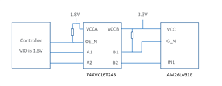 I am using SN74AVC16T245 to convert some control signals from 1.8V to 3.3V to AM26LV31E inputs. But 1.8V power sequence is lags the 3.3V. when the VCCB 3.3V is fully ramped and stable, the VCCA 1.8V shall not be start. And the 1.8V power down speed is faster than 3.3V.