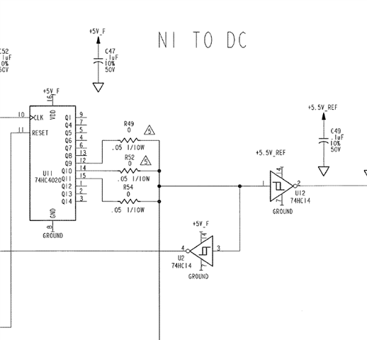 The clamp diode characteristics. During the power up transistion, the Clamp diode drop is more and hence pulling VCC to higher voltage level. This causes a failure in the unit level. The existing design was using a similar part from ONsemi MC74HC14AD,which doesnt causes this failure. The TI CD74HC14 was considered as FFF equivalent and went ahead with same design.