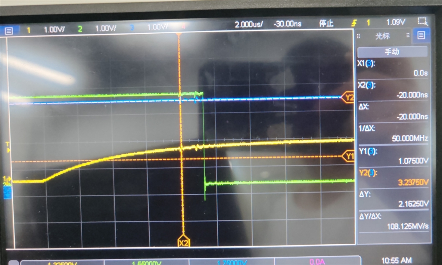 Blue is VCC. Yellow is input signal. Green is output. when input signal is up to 1.1V. Output goes down to 0V. It is unreasonable.