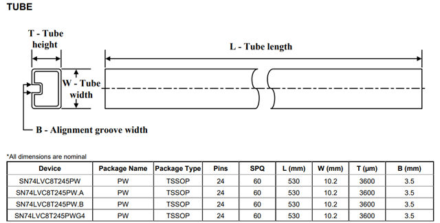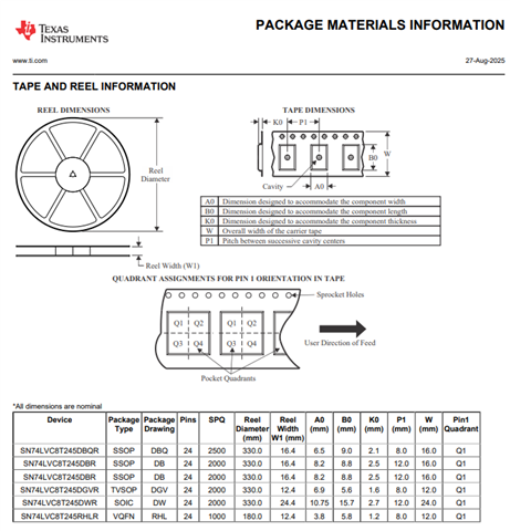 Customer is asking simply, customer is talking about SN74LVC8T245PWR this device which is a tape-and-reel part number, but NOT talking about SN74LVC8T245PW this tube part number; however, TI datasheet does not provide the SN74LVC8T245PWR tape-and-reel information, it is missing. So can you help to check?