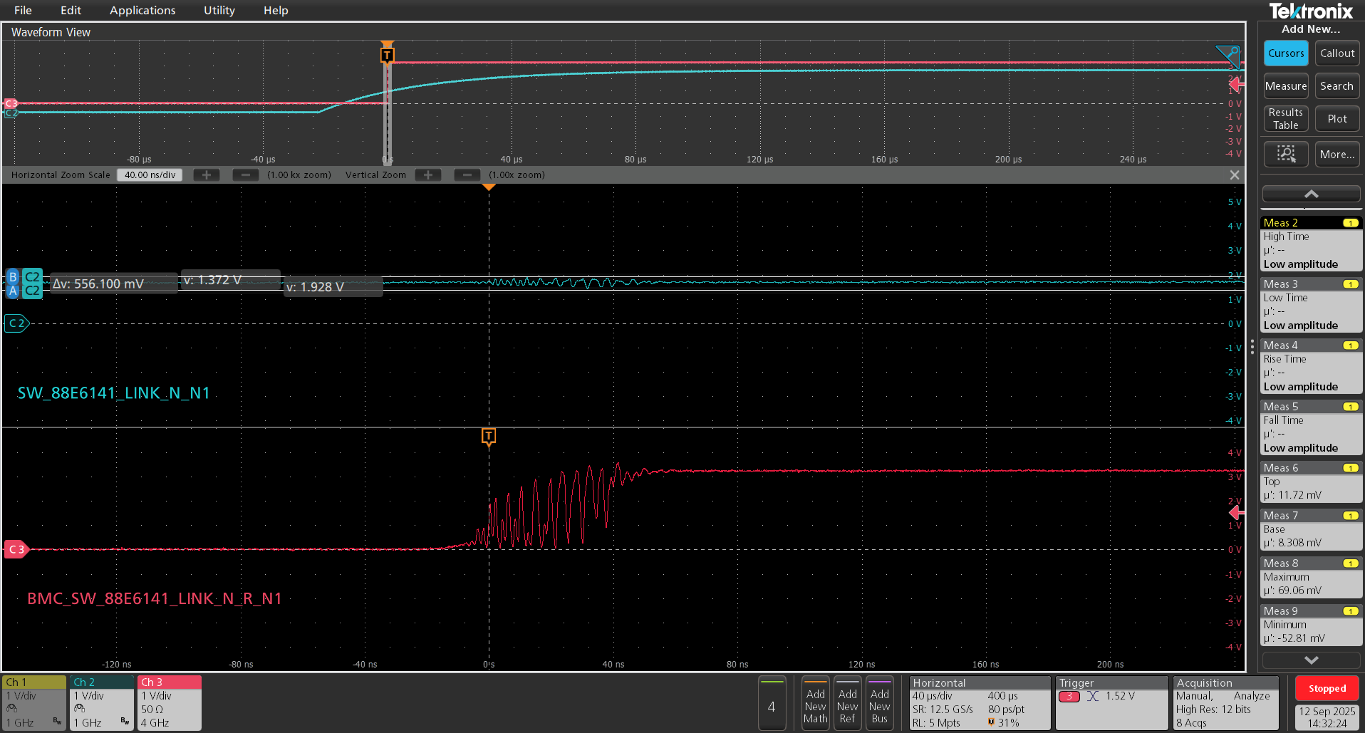 Below is the transimition waveform. The blue curve is input, the red curve is output. But you can find there is jitter on output. Could you please explain the waveform? Is it caused by the slow input slew rate?