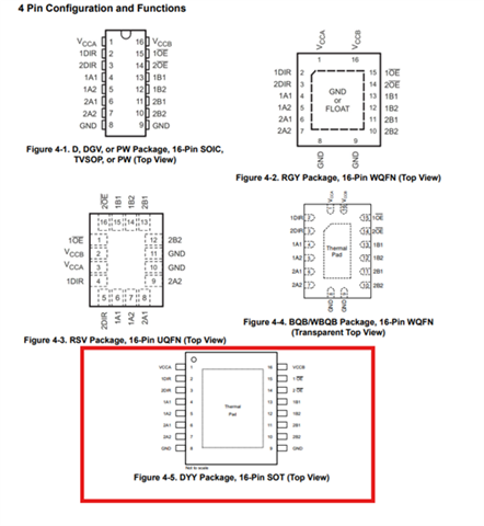 I was referring the SN74AVC4T245DYYR datasheet to create the symbol and footprint, but I found an error in datasheet regarding the thermal pad. In the section: Pin Configuration and Functions, its mentioned the thermal pad for this part number but not mentioned the thermal pad dimensions in the package, land pattern information.